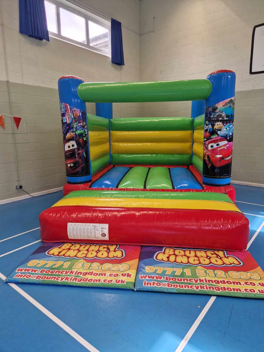 CARS CARS CARS Low height bouncy castle, multicoloured to suit any event. This bouncy castle is designed for indoor use.